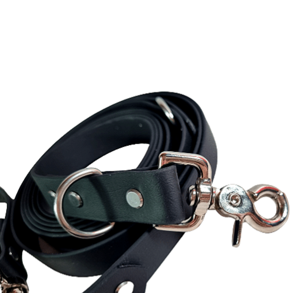 Notre laisse multipositions en biothane est fabriquée à la main avec soin et attention aux détails pour assurer une qualité optimale. Offrez à votre chien le meilleur avec cette laisse multipositions en biothane, l'accessoire parfait pour toutes vos balades et sorties en plein air.