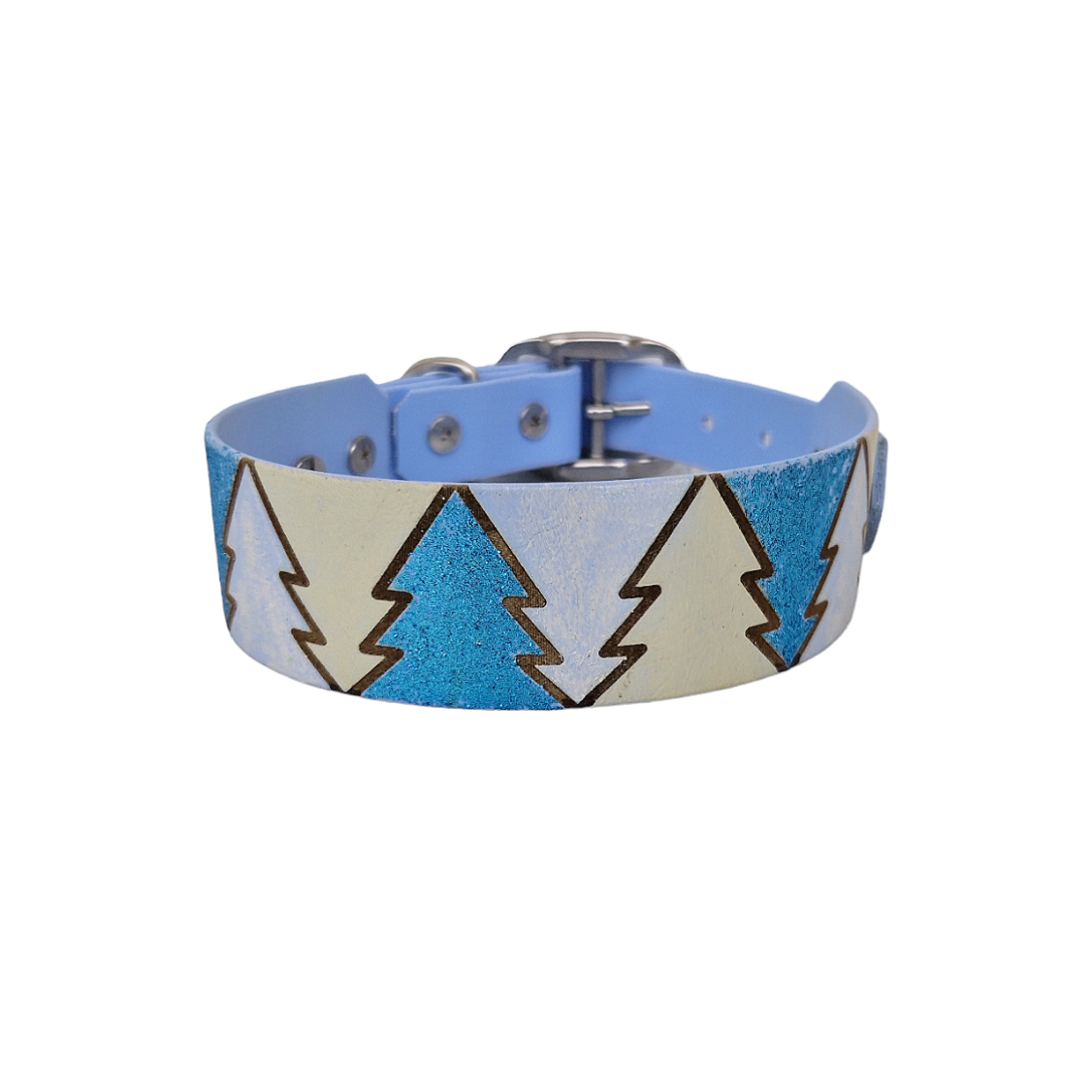 Ces colliers arborent un motif de sapins délicatement alignés et inversés, créant une esthétique unique.